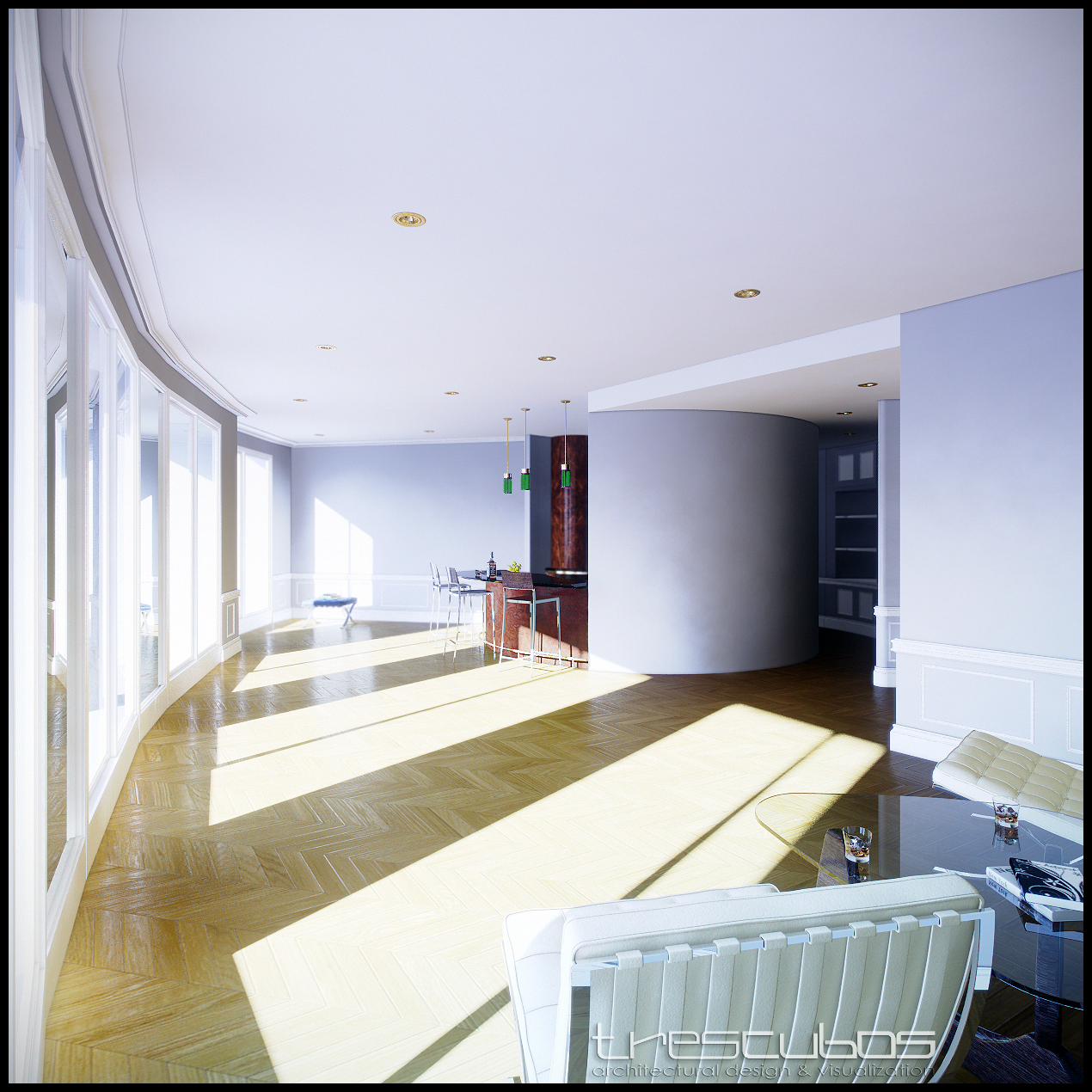 Bueno pues esta modelado en Max, importando los planos CAD, el renderizado en Mental Ray, y la iluminación con un Daylight system, al principio la iba a iluminar con un HDR, pero el render tardaba mucho más, estos me tardaron más o menos tres horas cada uno, en un AMD FX 8350 y 16 de RAM, y la mensaje en PS y magic bullet, si quieres algún dato más, pídelo.