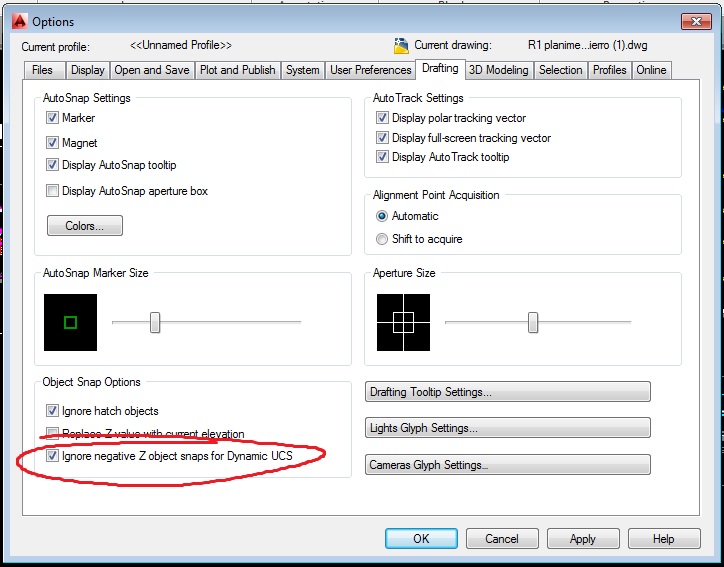 En las opciones, pestaña drafting tienes la opción de ignore negative Z object snaps for dynamic UCS si desactivas esta opción los objetos se restringen en el eje de profundidad, en este caso el eje Z, pero dependiendo de la UCS restringe el eje que hace que se te desplacen las cosas.