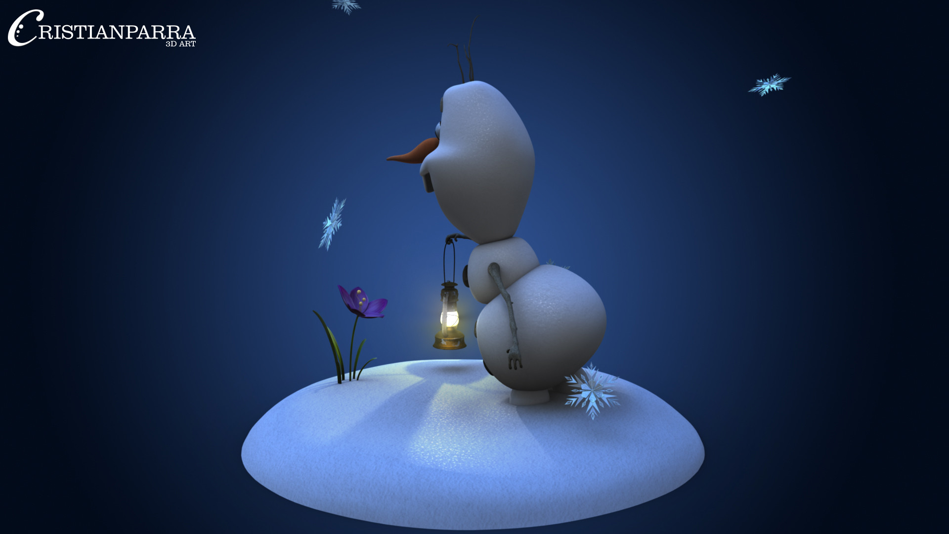 ¿Qué rápido eh? Haha Aquí tenéis el render con muchos cambios, os cuento, os acordáis que os dije que tenía problemas con la nieve? Solucionado, texturas de la nieve completamente nuevas y mejores tiene unos brillos :3 en un frame no se aprecia mucho, pero en el turn arround si. Luego, he modificado el material de los copues de nieve, ahora están más acorde con la nieve, que más, he arreglado un problema con la nariz del pobre Olaf, la flor también la he modificado, su specular y el color de los capullos, y por último (creo que no me dejo nada) el Glow del faro, que gracias a 3DJDAVID por su aportación por el comentario me iluminó (y nunca mejor dicho).