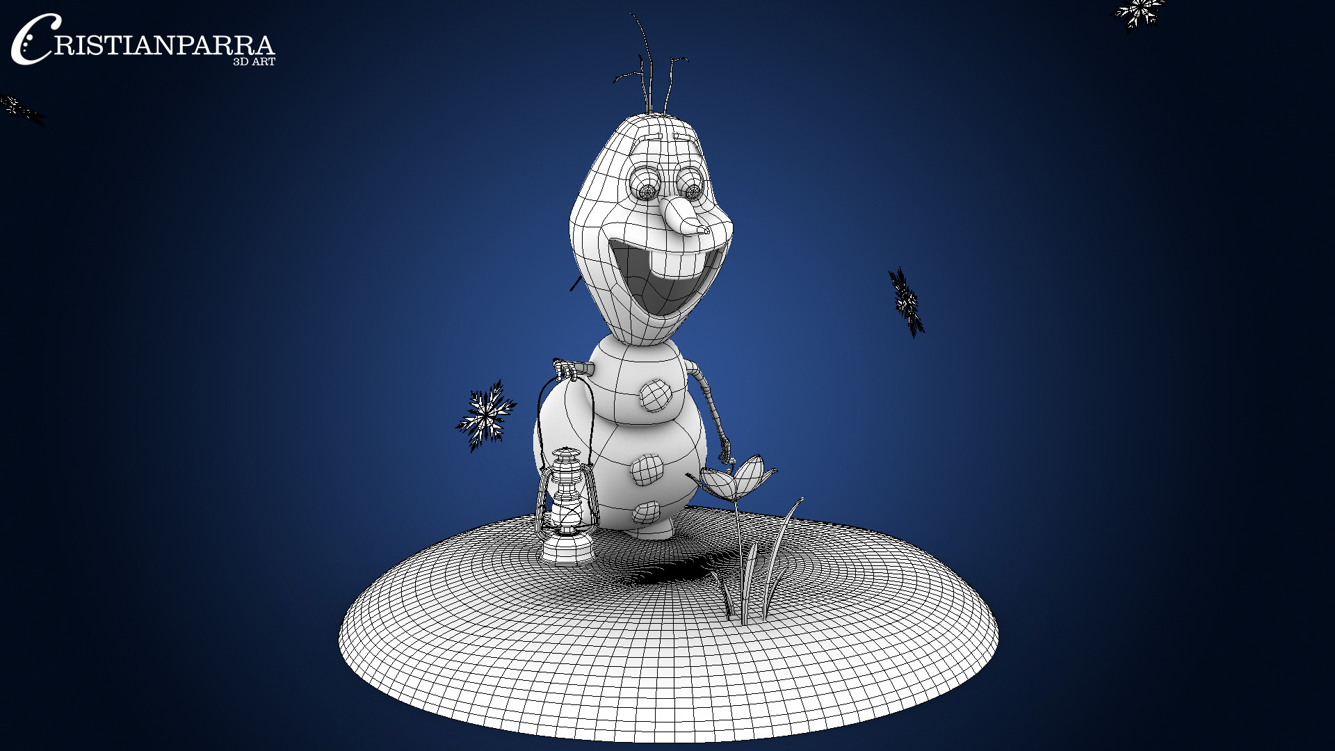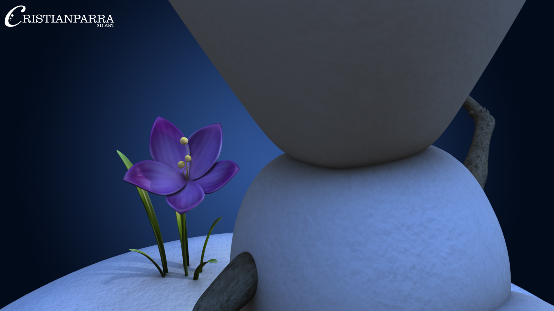 Hola. Ya lo tengo casi todo listo y estoy muy orgulloso de tanto esfuerzo, pero no tengo que decaer, esto es un reto para mí y hay que darlo todo hasta el final. Ahora estoy en el punto de retocar pequeños cambios y añadir los últimos detalles, quiero que el conjunto sea un poco sorpresa por lo que os iré poniendo algunos render del personaje, aviso que no están aún del todo acabados, el aliasing aún está bajo y otras cosas más. De momento os dejo con este render de la flor que ve Olaf y de allí su cara sorprendido.