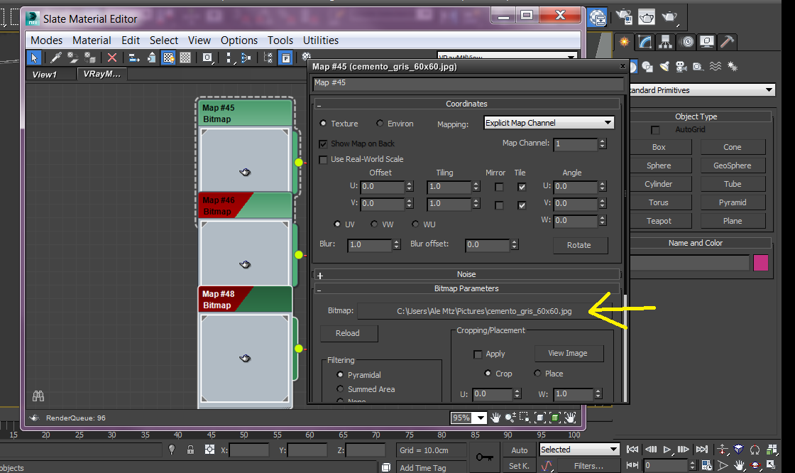Si esto está bien y tiras un render, este sale con la textura ok? Si el render esta ok, puede ser que no veas el material por un tema del motor gráfico, ya sea direct3d, nitrous, etc.