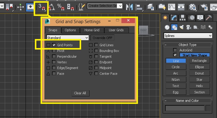 En la ventana vista ortográfica selecciono el punto desde el que quiero trazar la línea, me muevo después a la ventana front y trazo la línea hasta el punto deseado.