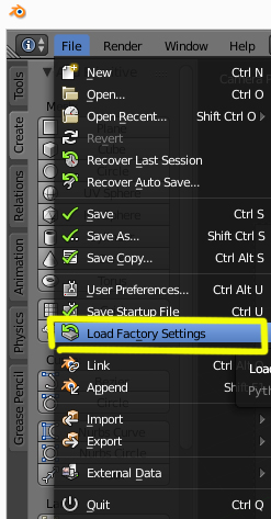 Para cargar los valores por defecto utiliza, File > Load Factory Settings