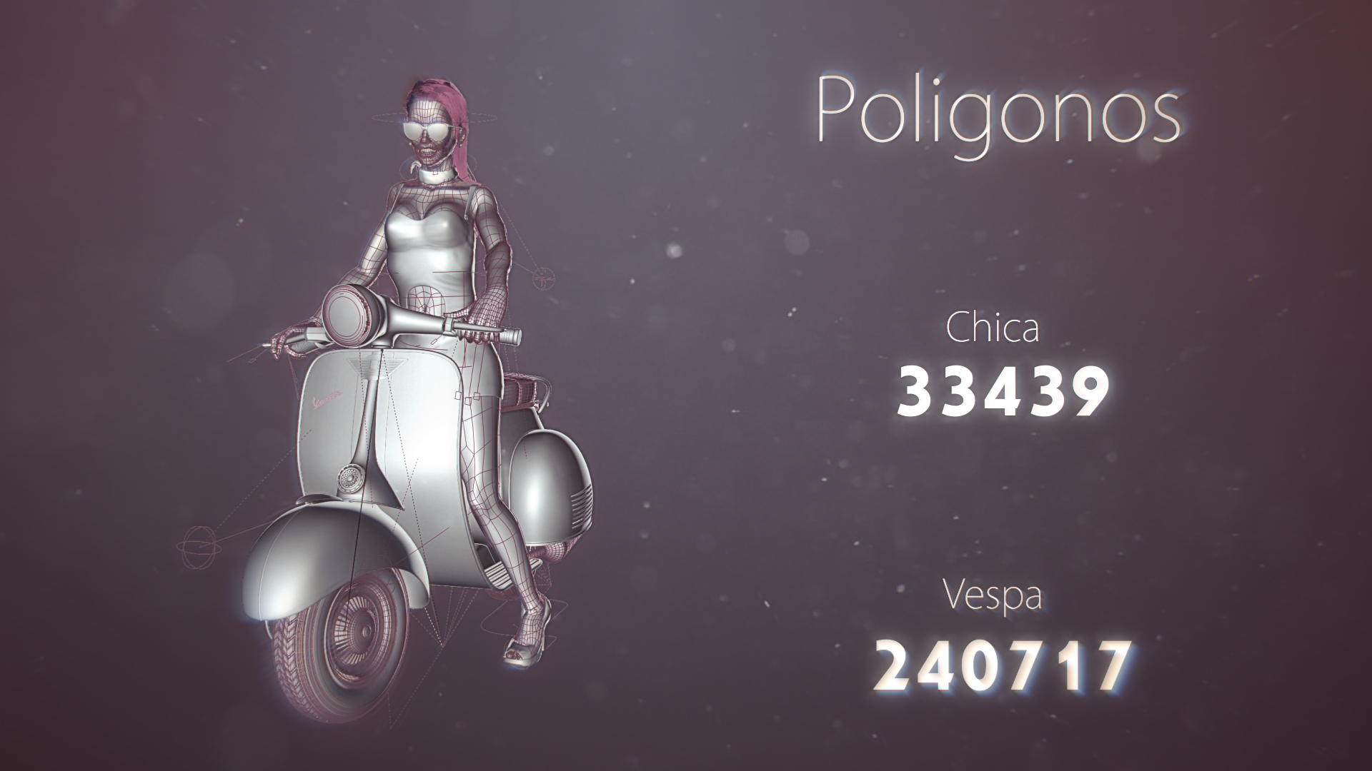 Buenas, vi tu trabajo en el mensaje de proceso, y el trabajo final muy bueno, fantástico modelado de la vespa y la chica. La chica esta modelada a partir un modelo real? Un saludo.