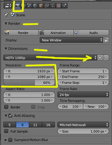 Para estar seguro, ves a RENDER > Dimenssions y seleccione desde el Render Presets (valores predeterminados) uno de tipo HDTV 1080p