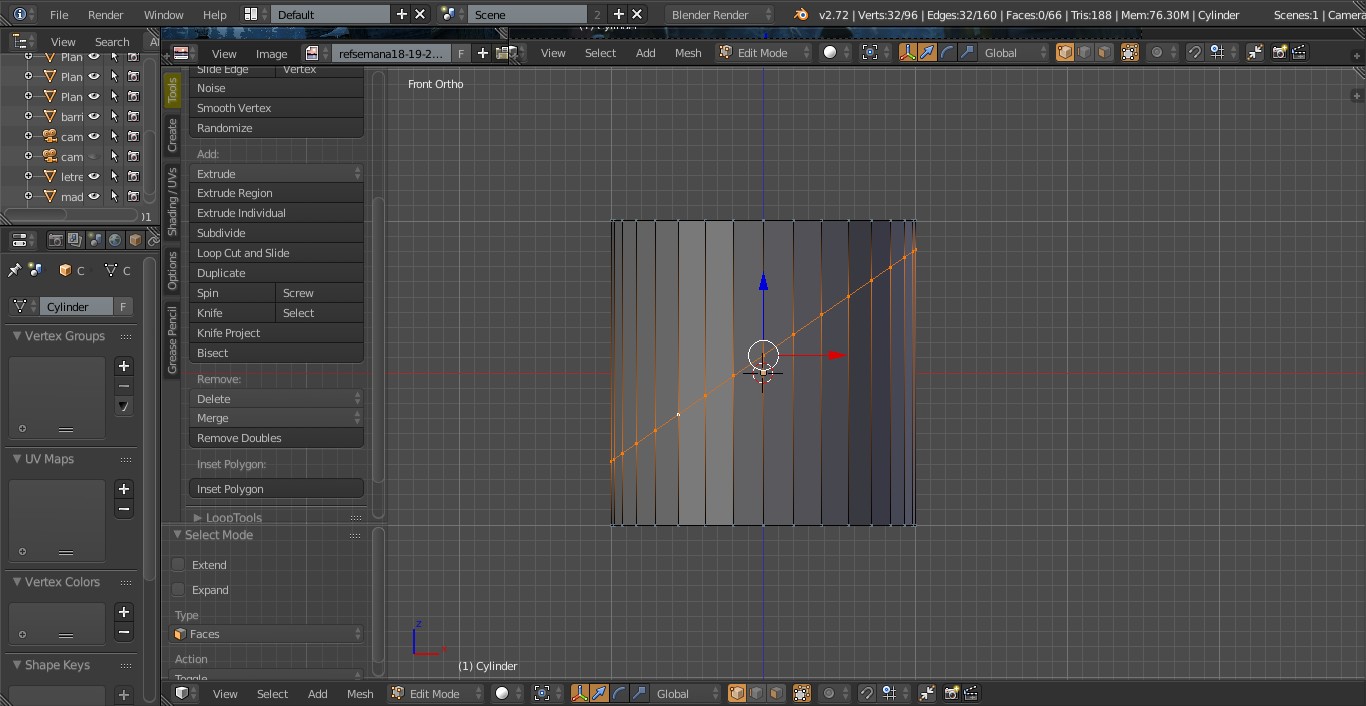 Y lo puedes hacer sobre un modelo seleccionando dos vértices distantes y te creará una línea de cortes por los lados sobre los que pase.