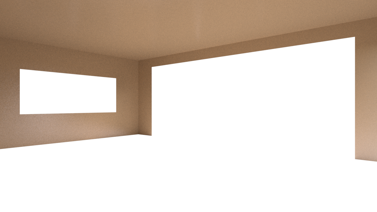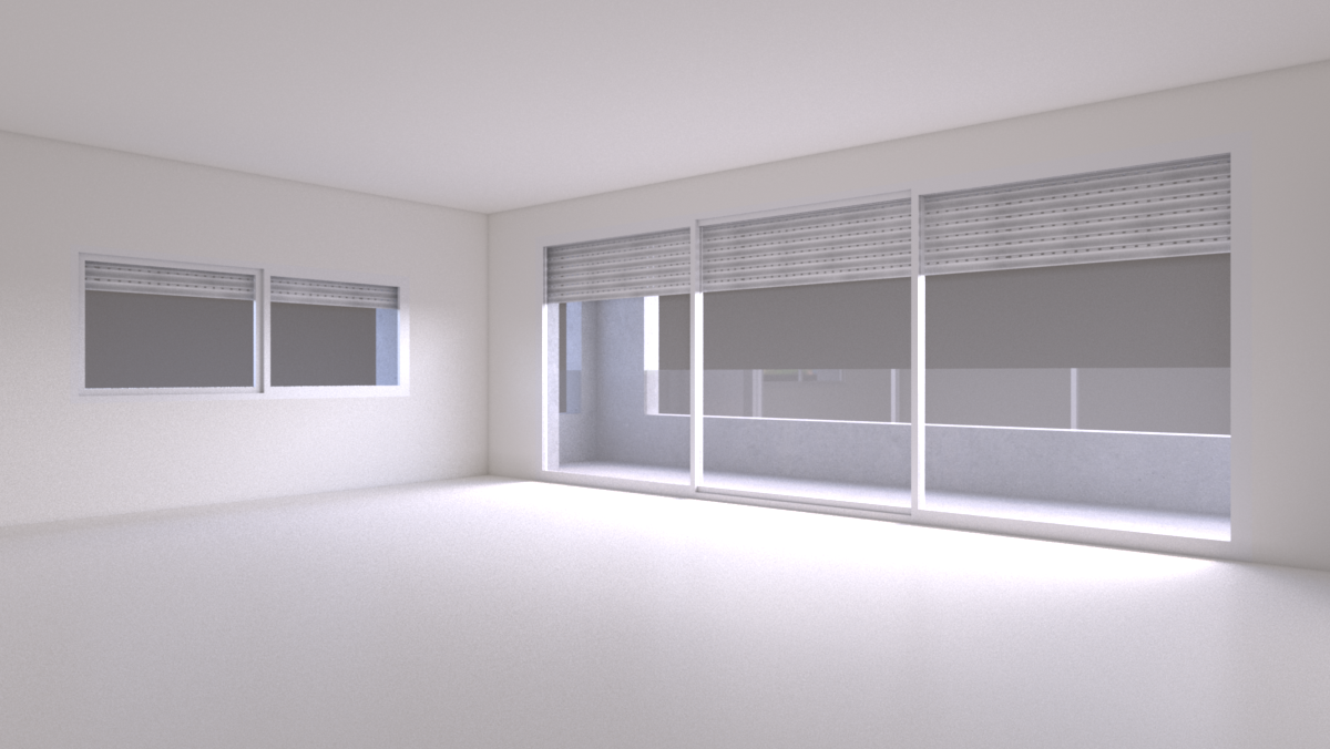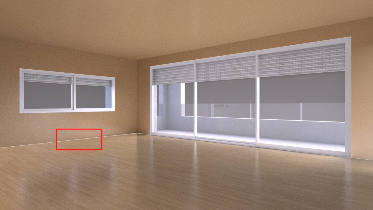 Sobre esta imagen, tengo que ir sacando, como si fueran pegatinas, diferentes configuraciones de paredes y suelos. He conseguido, modificando las propiedades Vray de cada objeto de la escena, que sólo sean visibles las partes que necesito, como en este ejemplo.