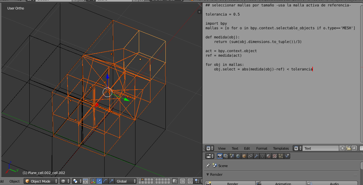 ## seleccionar mallas por tamaño -usa la malla activa de referencia-.