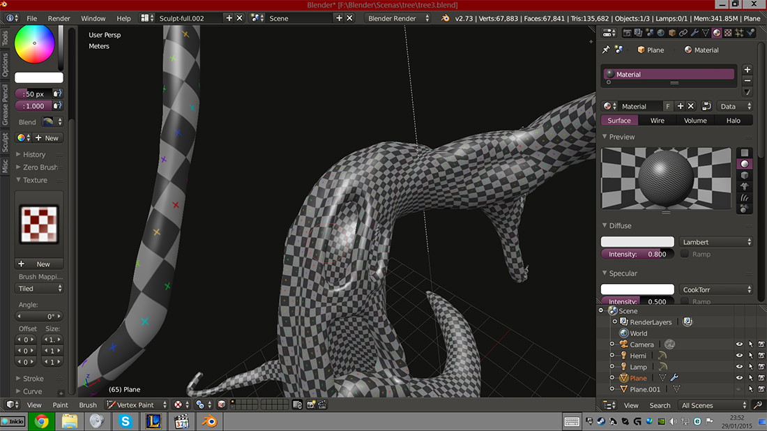 El árbol tiene una textura de una fotografía UV, estoy en Vertex Paint, pero al pasar el ratón no pinta, me ha pasado anteriormente, pero he olvidado la razón. Saludos.