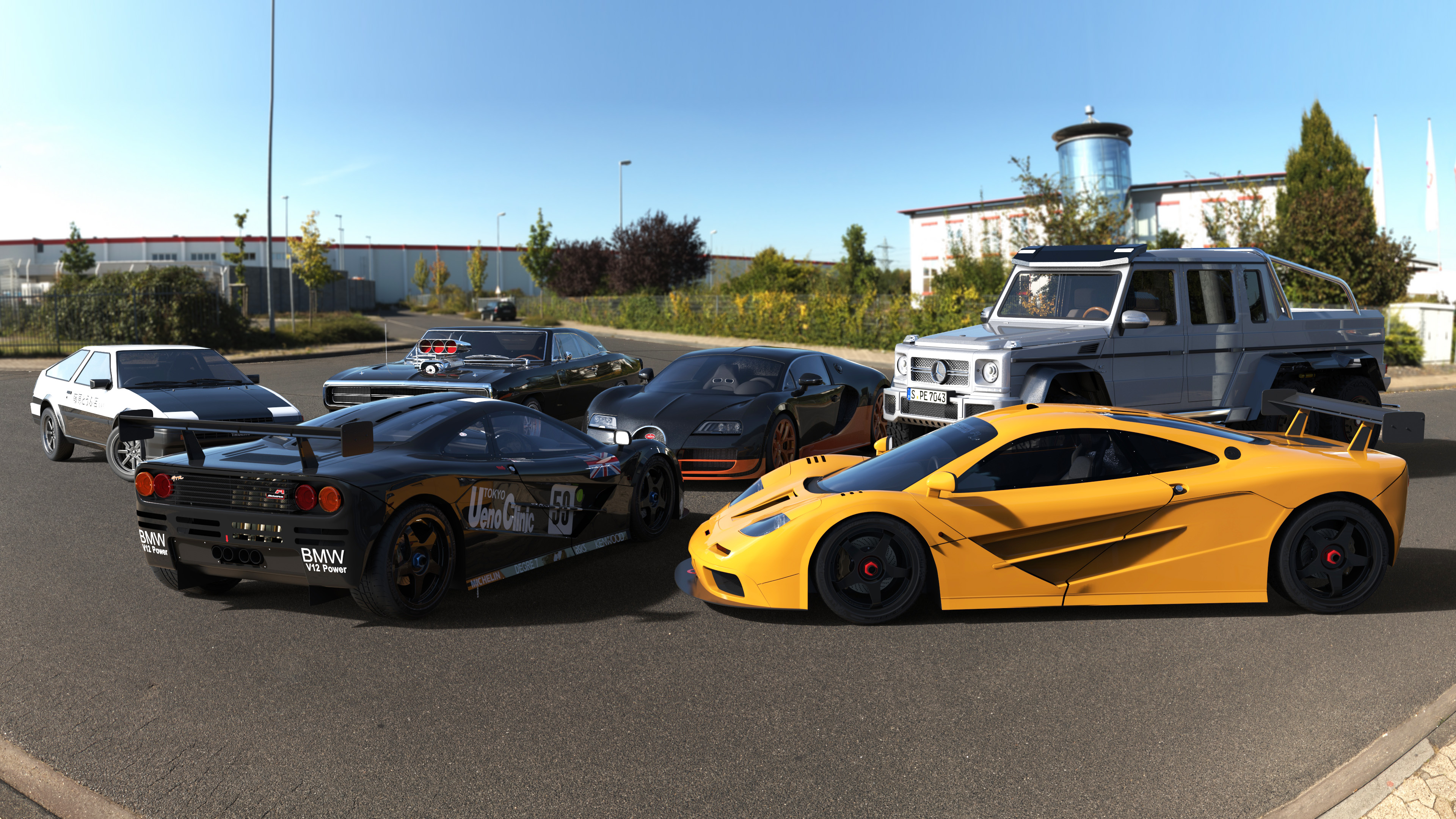 En la misma escena, pero junto a otros coches/autos que he modelado recientemente.