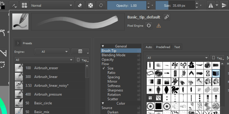 Estas herramientas ahora tienen opciones de herramientas mejor organizadas (MR 1360, MR 1453), lo cual es necesario, porque ahora hay controles deslizantes para suavidad variable (MR 1174) y suavizado adecuado basado en el algoritmo FXAA (MR 1350).