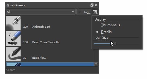 Añadir un pincel prestablecido en el historial de la ventana desplegable.