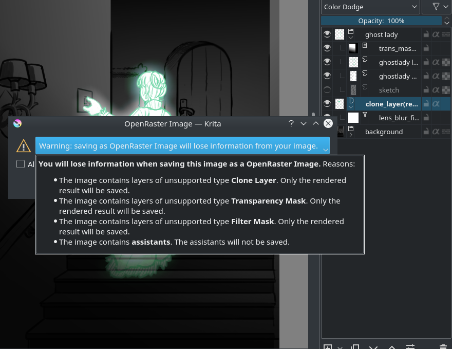 Krita también es compatible con JPEG XL (.jxl), la versión de última generación de la especificación de imágenes JPEG. La implementación inicial admite animación, aunque no espacios de color HDR.