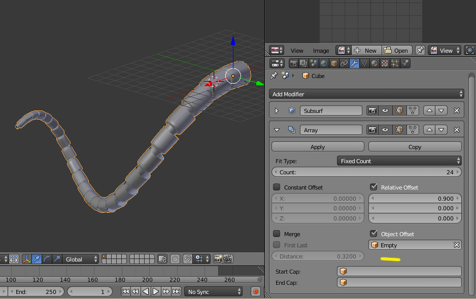 Tengo un problema con el modificador Array y es que en las repeticiones del objeto, éste me va perdiendo la línea recta, se va repitiendo el modelo, pero no en línea recta. Está vinculado a un Empty al activar el object offset, no sé si esto tiene algo que ver.