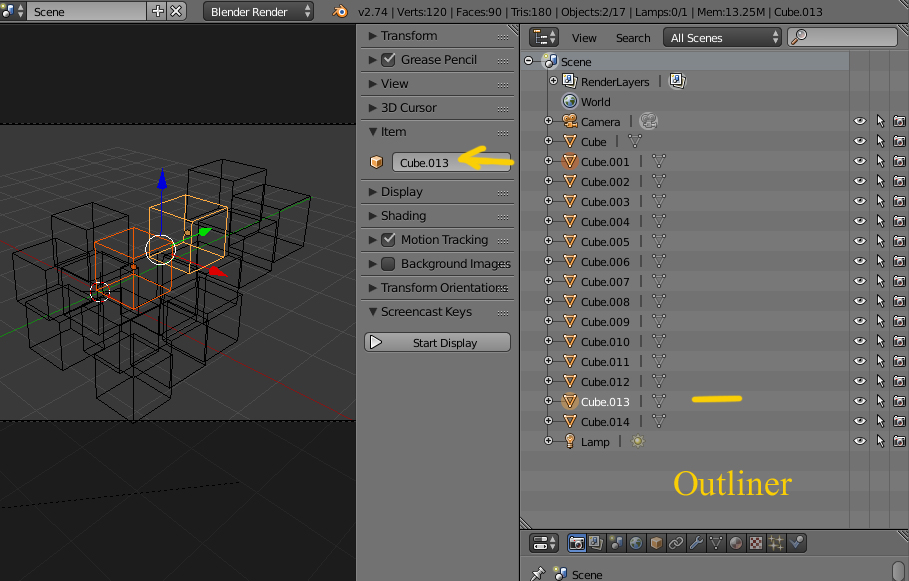 De todas formas, lo mejor es tener un Outliner abierto y así poder ver o seleccionar los objetos. Mejor, si les pones nombre a cada objeto.