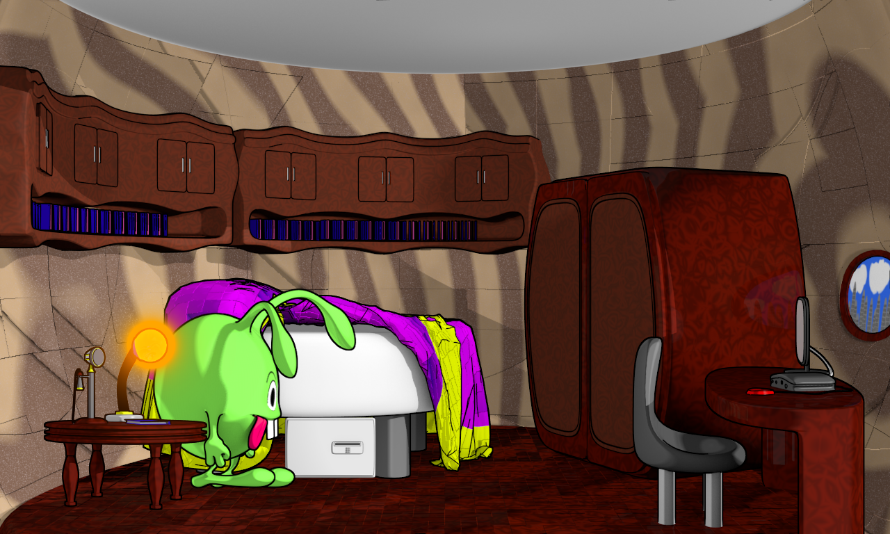 Pinta bien, hecho en falta algo más de colorido en la escena, entiendo que el personaje central y los objetos con los que interactúa deben tener más colorido que el resto de la escena, pero bueno, mi punto de vista es que la escena es demasiado clara. Pero apunta buena forma, ¿de que irá el juego? Si se puede revelar algo. Un saludo amigo.
