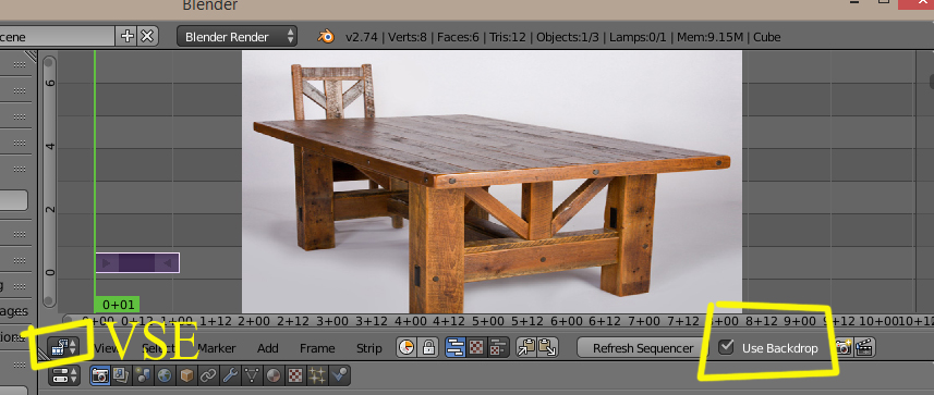 Para ver la imagen o el vídeo de fondo en el Video Sequence Editor (VSE) solo hay que marcar una casilla llamada USE BACKDROP.