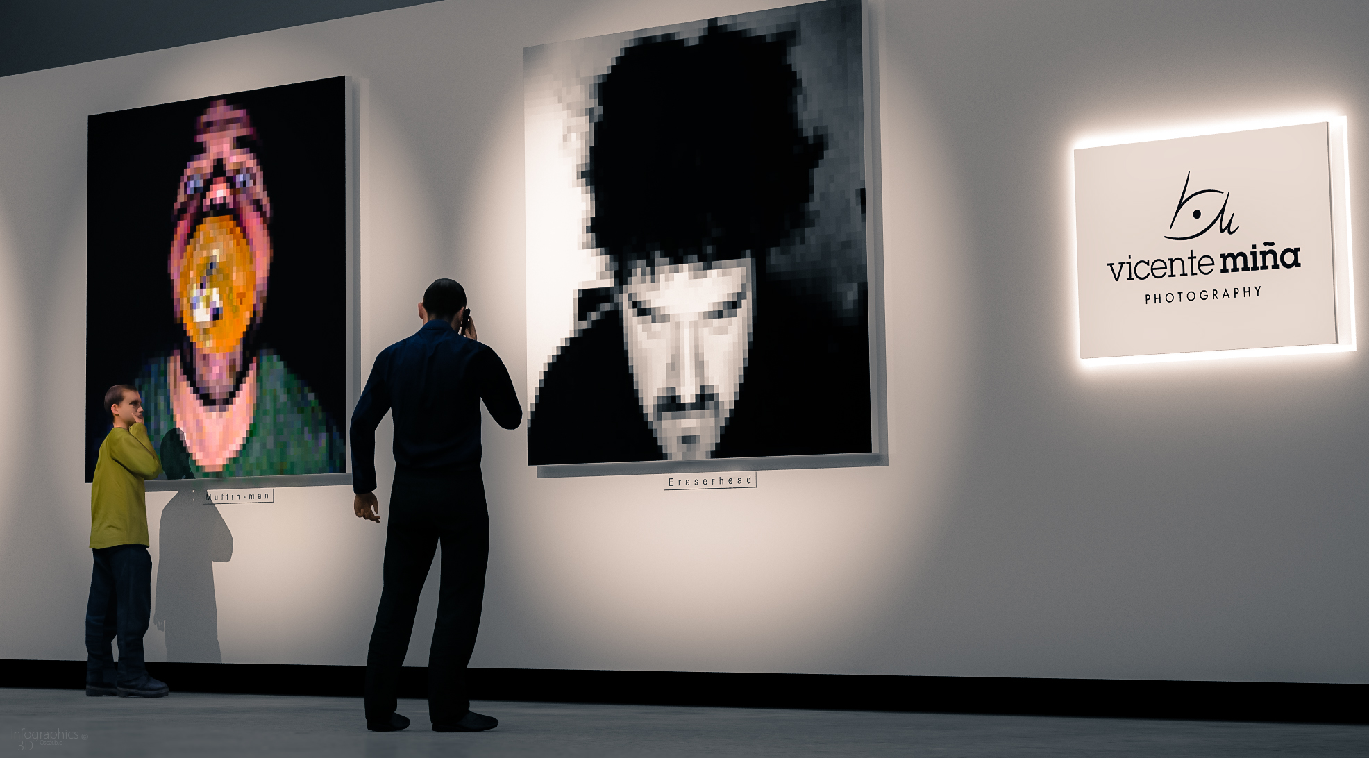 Tengo una imagen pixelada la cual he hecho a propósito porque necesito que de cerca tenga píxeles y a medida qué la cámara se vaya alejando se aprecie una fotografía.