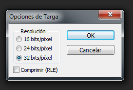La duda qué me surge ahora viene con Adobe Photoshop ya que, al guardar las imágenes en formato targa me sale el siguiente recuadro: