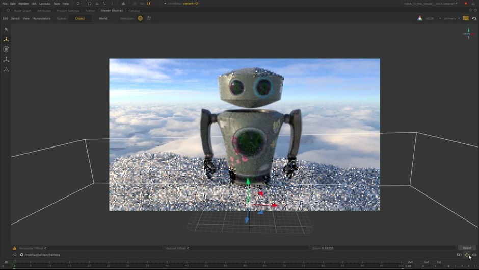 Soporte para instancias y nuevos delegados de renderizado dentro de la pestaña Hydra Viewer de Katana. Introducida en Katana 3.0 como sucesora de la ventana gráfica OpenSceneGraph heredada, ahora ha pasado a llamarse pestaña Viewer y la versión OSG ha quedado obsoleta.