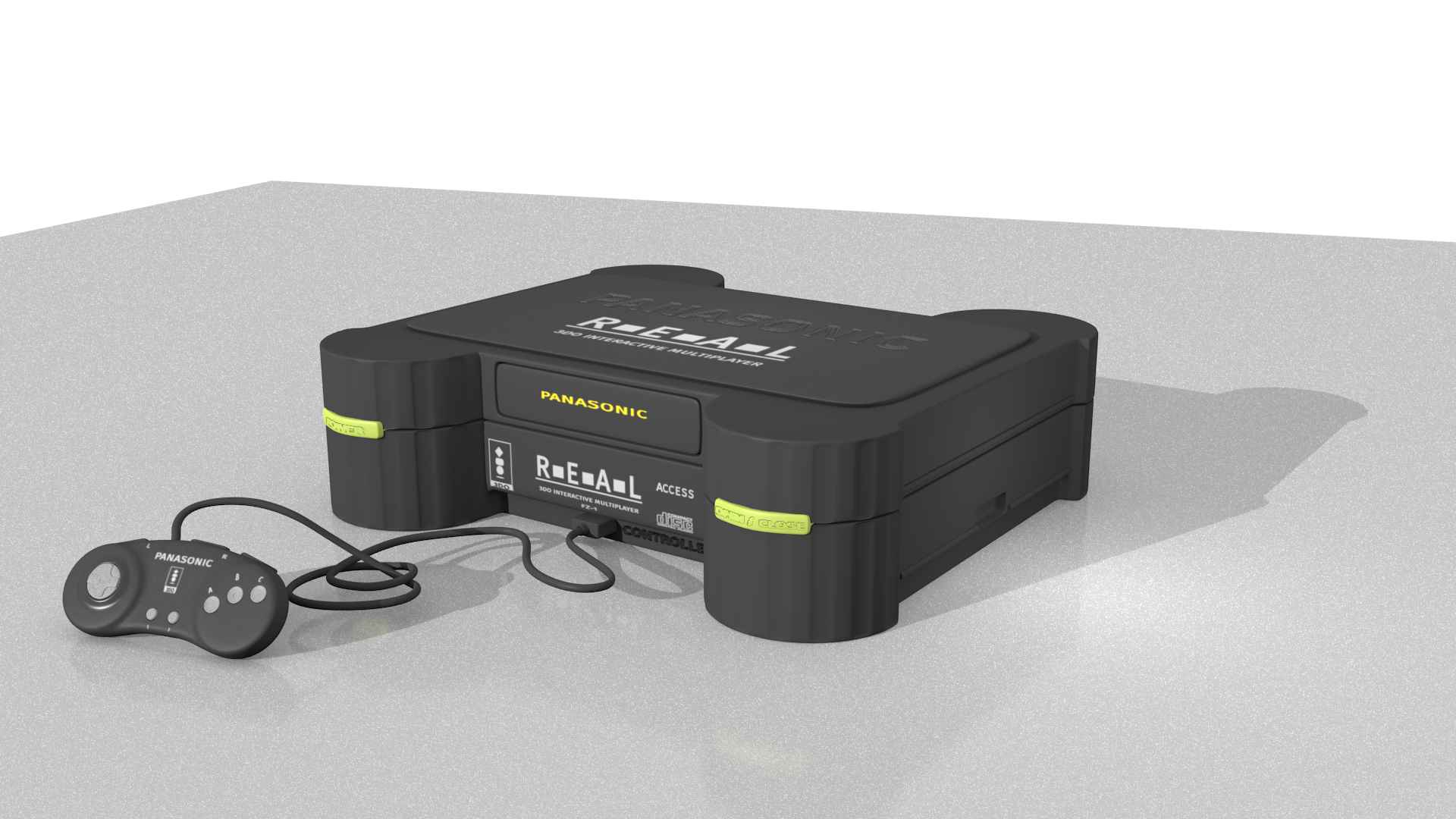 Pongo el render final de una consola sacada a mediados de los 90 y que no fue demasiado popular, pero que tiene un diseño bastante atrayente.
