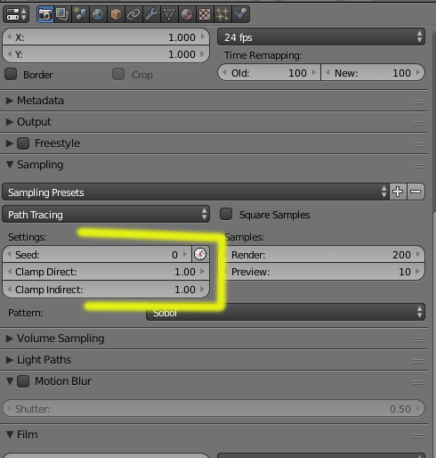Si, ya entiendo la imagen que salió sigue con ruido, pero no en exceso como antes :/ tenía los valores de CLAMP en 0 y creo el resto ya vendrá de los Samples e iluminación.