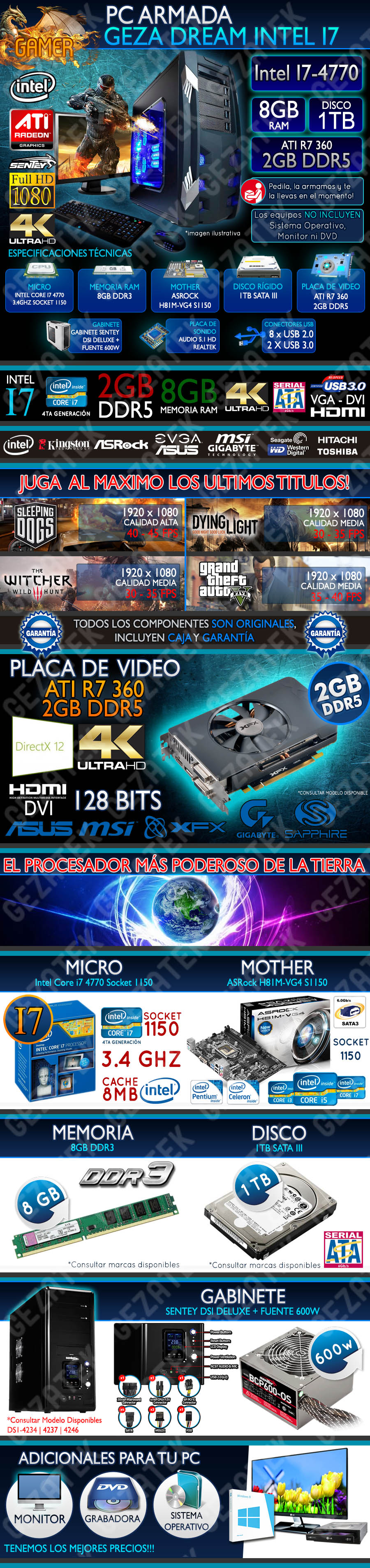 - Placa de vídeo: Gigabyte, ASUS (GTX 960 o GTX 970).
