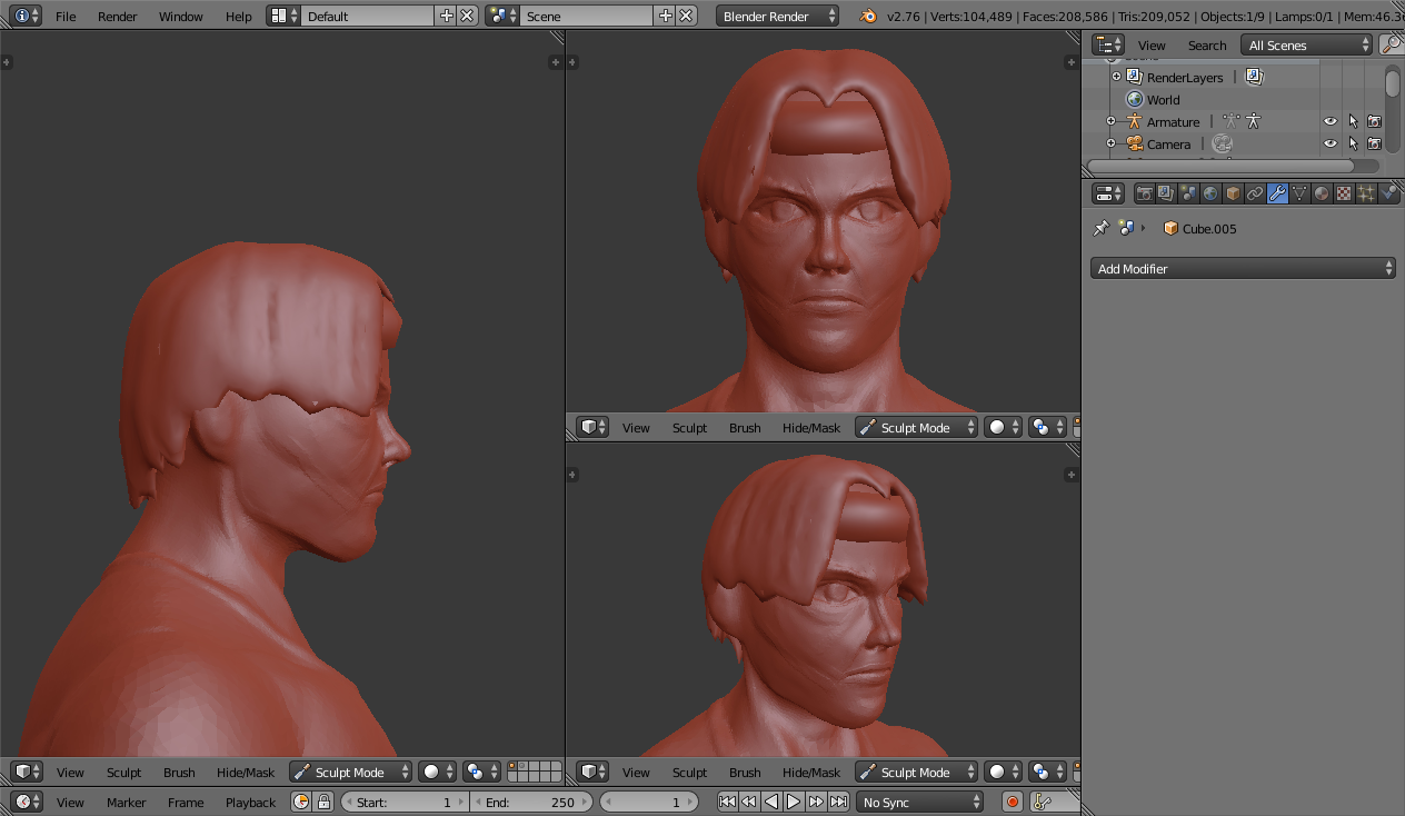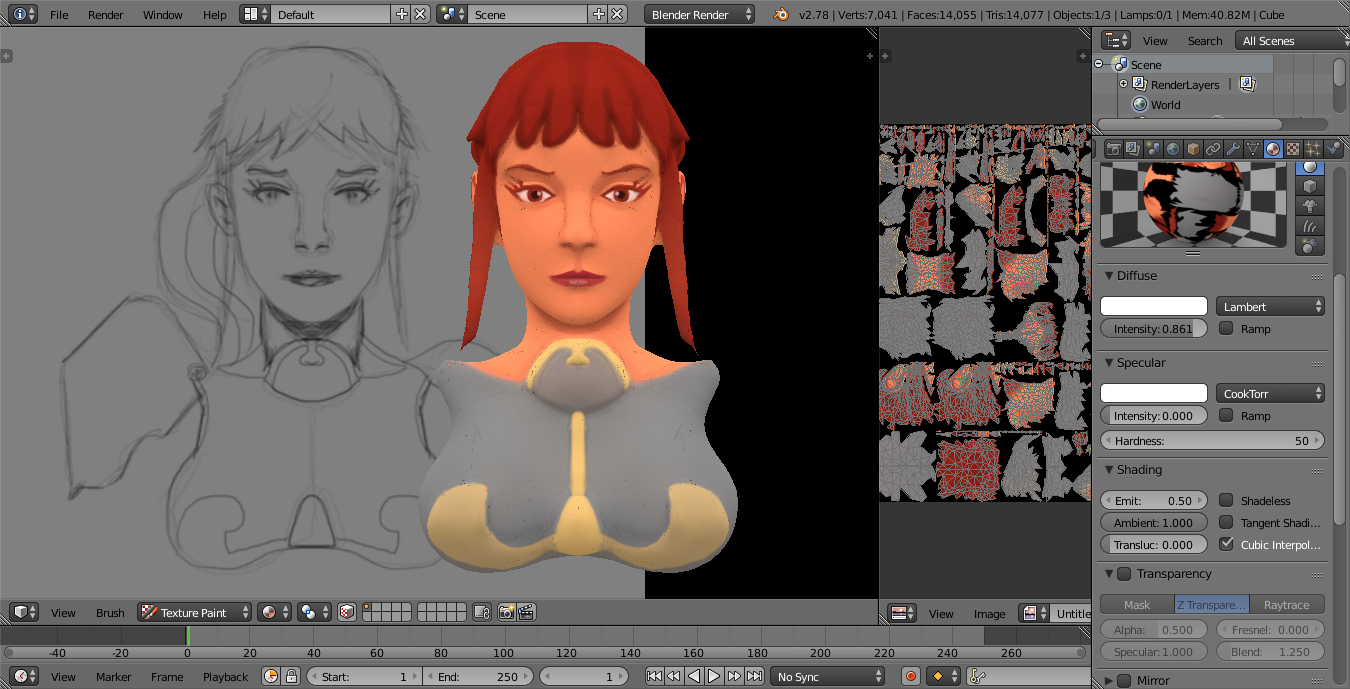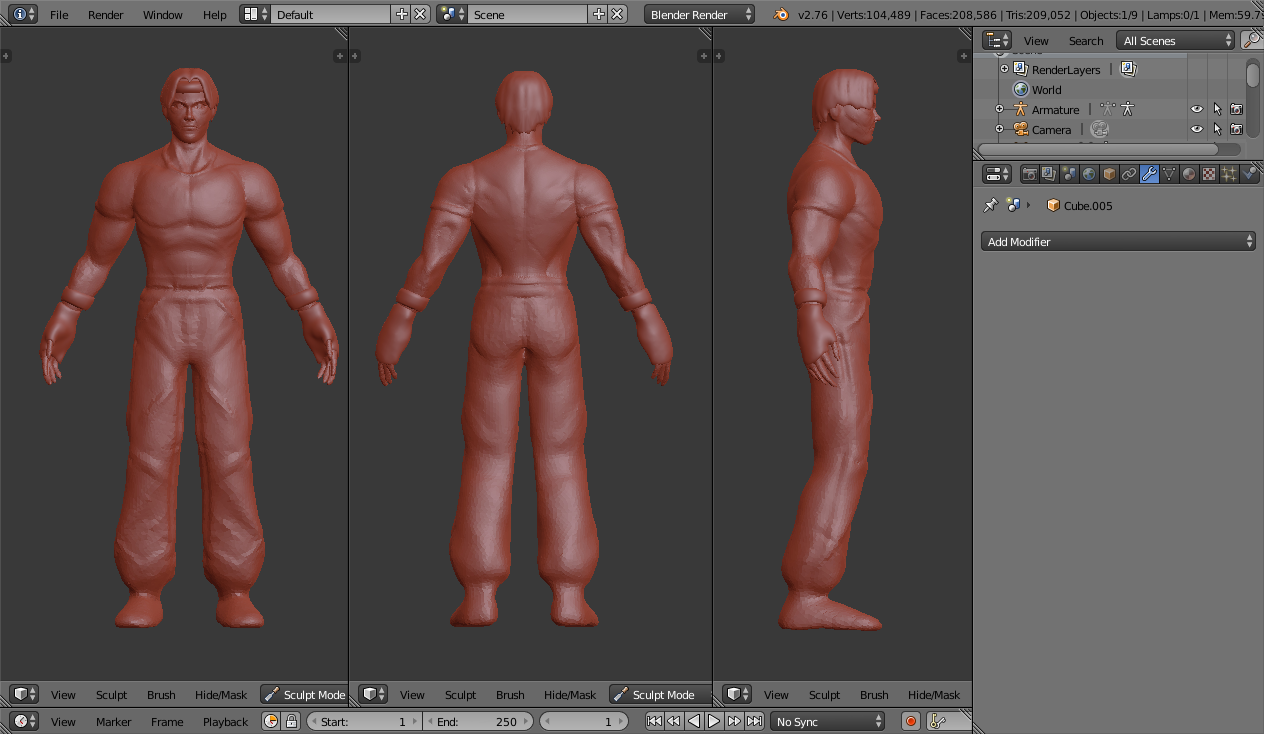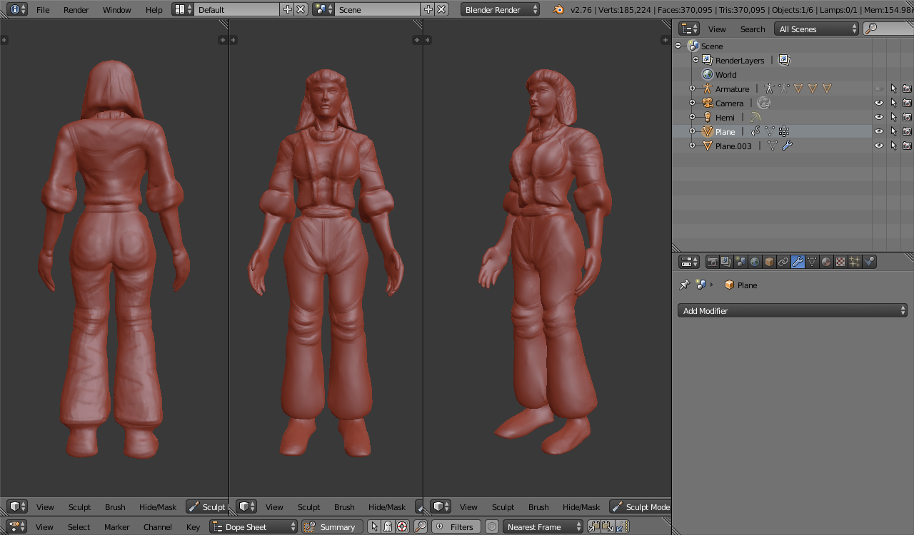 Bueno menos caperucita. Iré poniendo sketches y pruebas. Y espero que os gusten. Eso sí, todo es semi baja resolución porque mi ordenador no tira a más de 1 M de polígonos (realmente quien necesita más) y mucho, mucho tirar del nuevo decimate que por fin conserva los detalles finos y no rompe demasiado la malla.