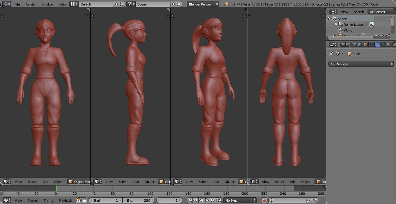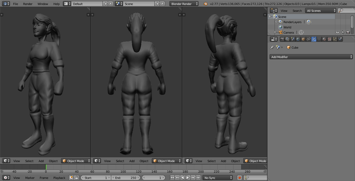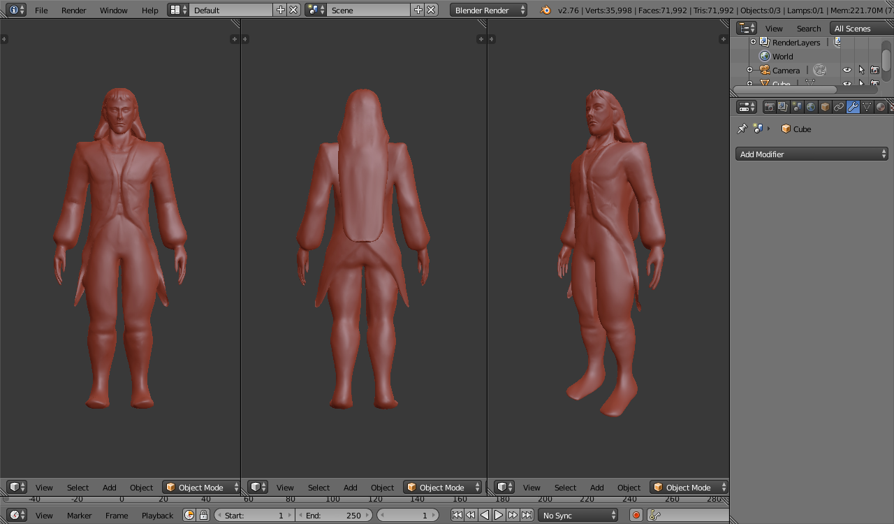Bueno menos caperucita. Iré poniendo sketches y pruebas. Y espero que os gusten. Eso sí, todo es semi baja resolución porque mi ordenador no tira a más de 1 M de polígonos (realmente quien necesita más) y mucho, mucho tirar del nuevo decimate que por fin conserva los detalles finos y no rompe demasiado la malla.