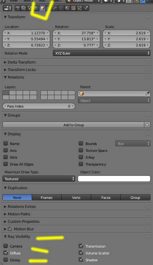 Si en el plano emisor desmarcas estas casilla, no saldrá ni el plano ni el reflejo en el GLOSY.