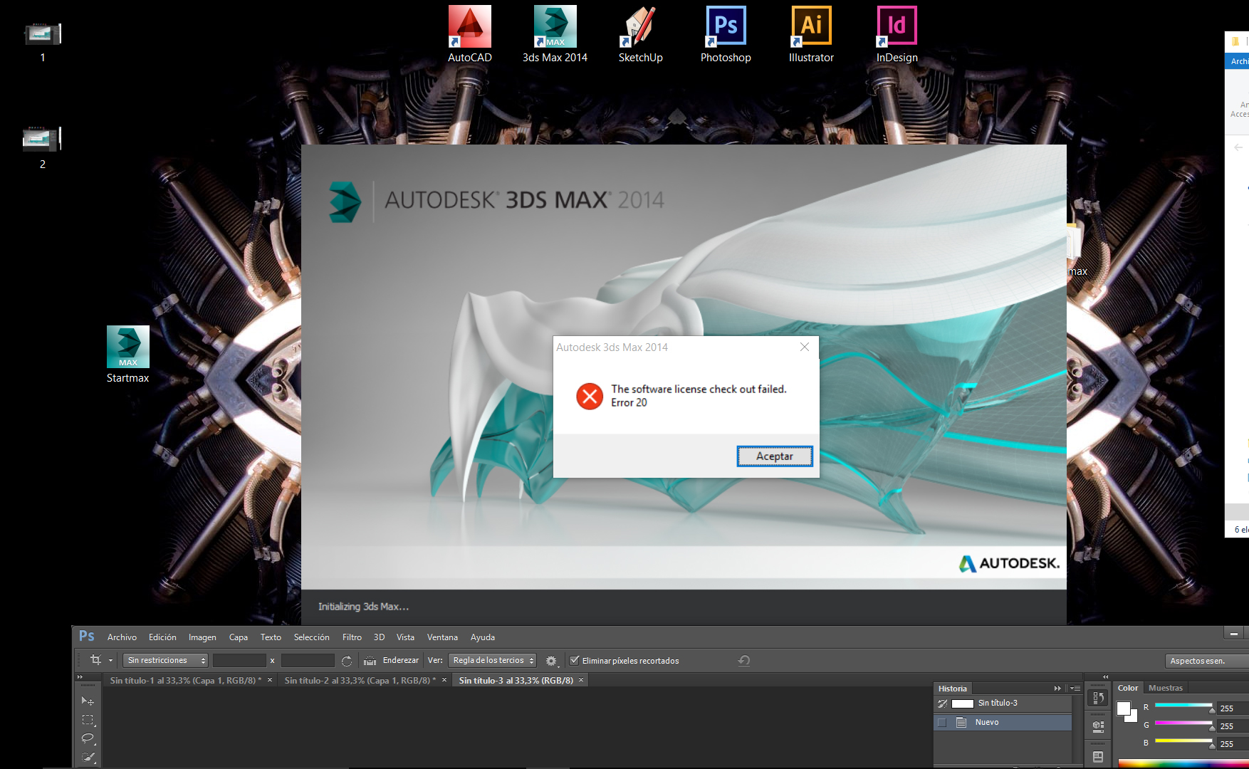 Hola. Buenas, alguien sabe algo o cómo solucionarlo he vuelto a instalar CAD y 3ds Max y sigue diciendo lo de las licencias. El caso es que para él paquete Adobe o SketchUp no me lo pide. Saludos.