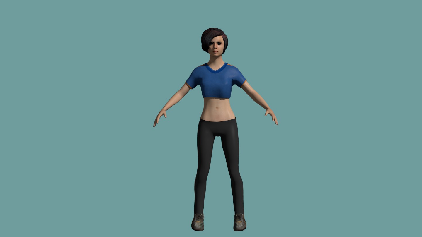Modelo creado con Makehuman con rigging facial incorporado, por lo que se puede animar el cuerpo y los gestos de la cara.