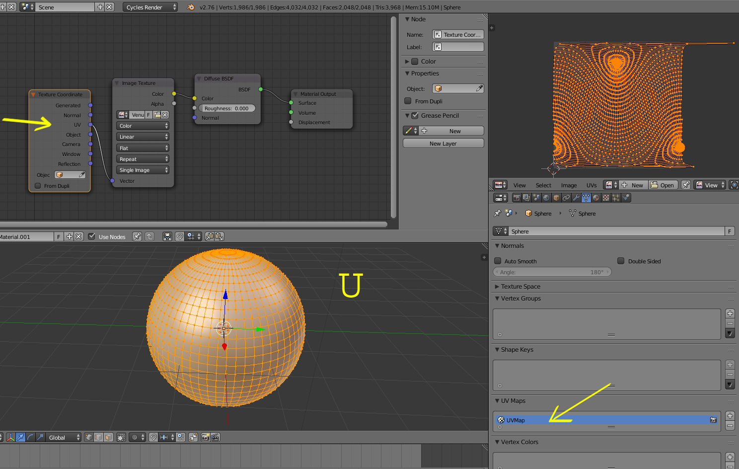 Si, en el minuto uno ya te dice que despliegues el mapa con letra u y Sphere Projection.