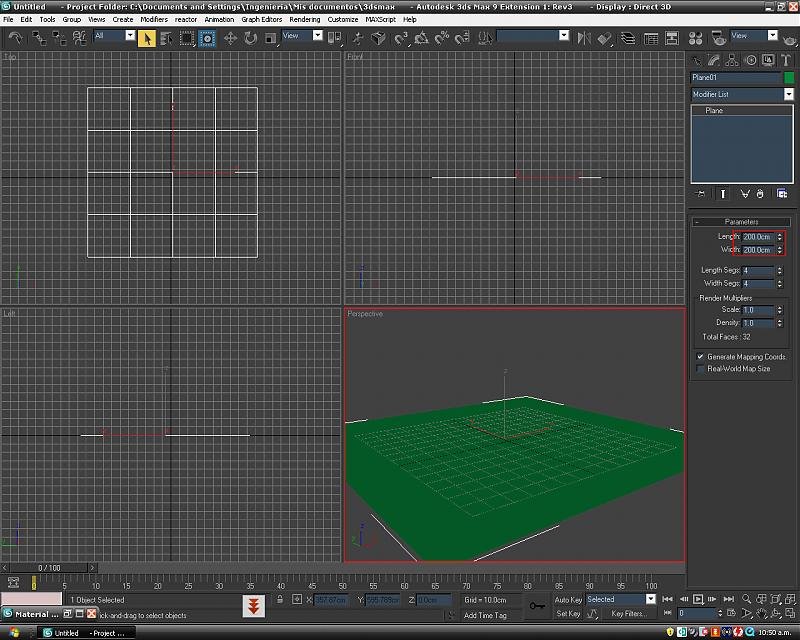 Primero empezaremos por hacer un plane de 200 por 200 centímetros, o en las unidades que trabajen.
