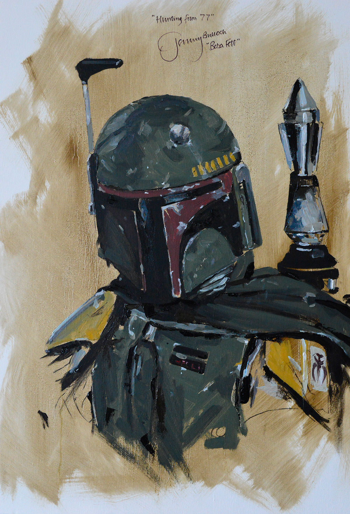 Pintura al oleo de Boba Fett, además conseguí que me la firmase el actor que lo encarnaba (Jeremy Bullock), donado a la lucha contra el cáncer (art vs cáncer / London).