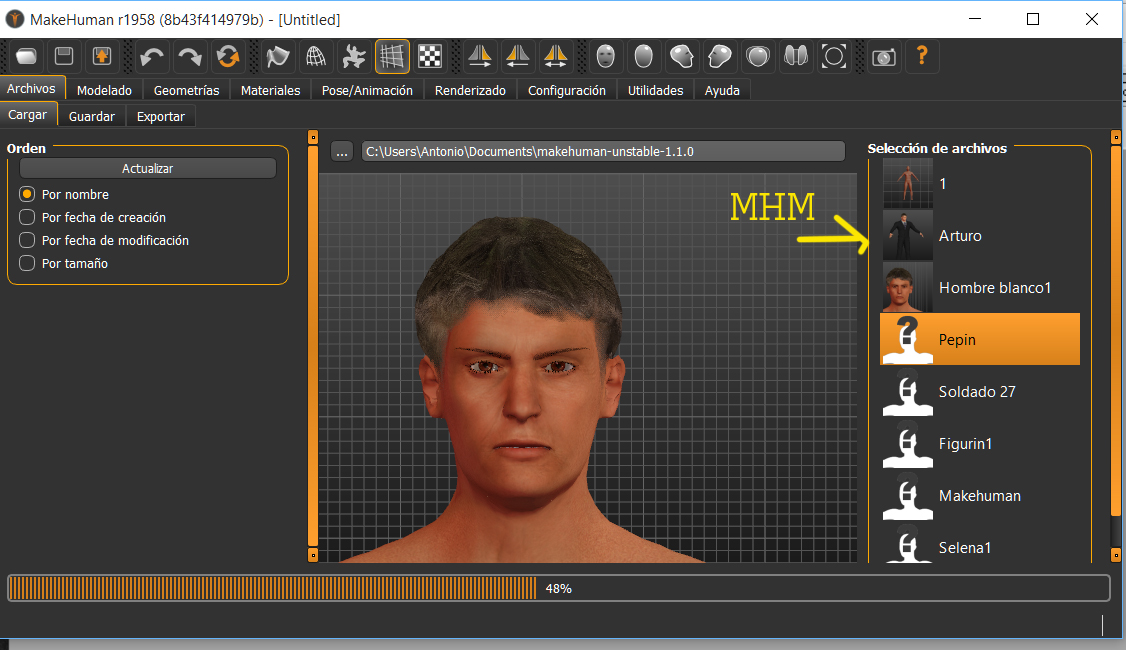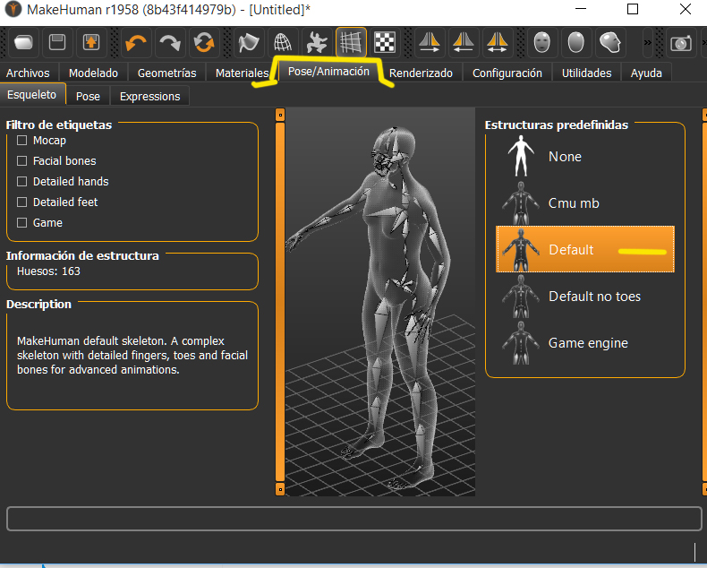 Retomando el hilo de esta versión de Makehuman 1.1.0