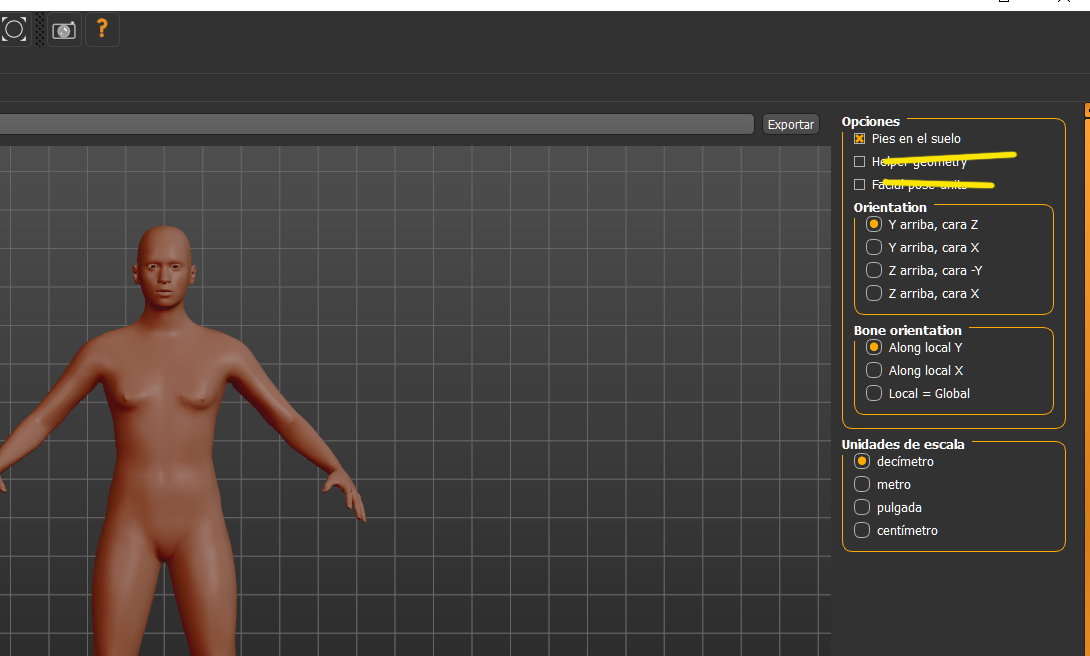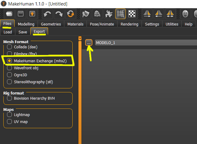 Exportar modelo makehuman a Blender