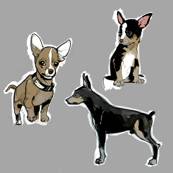 En mi break para comer, algunos bocetos perrunos, sobre todo chihuahuas.