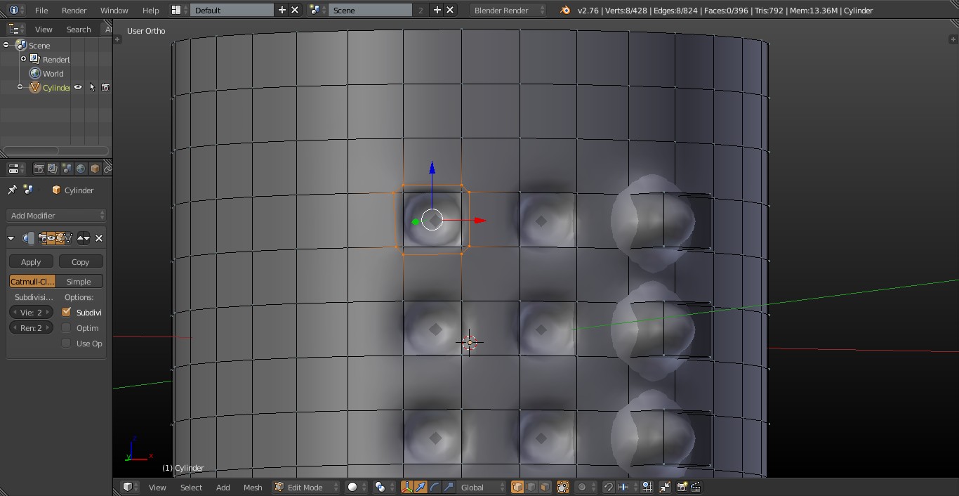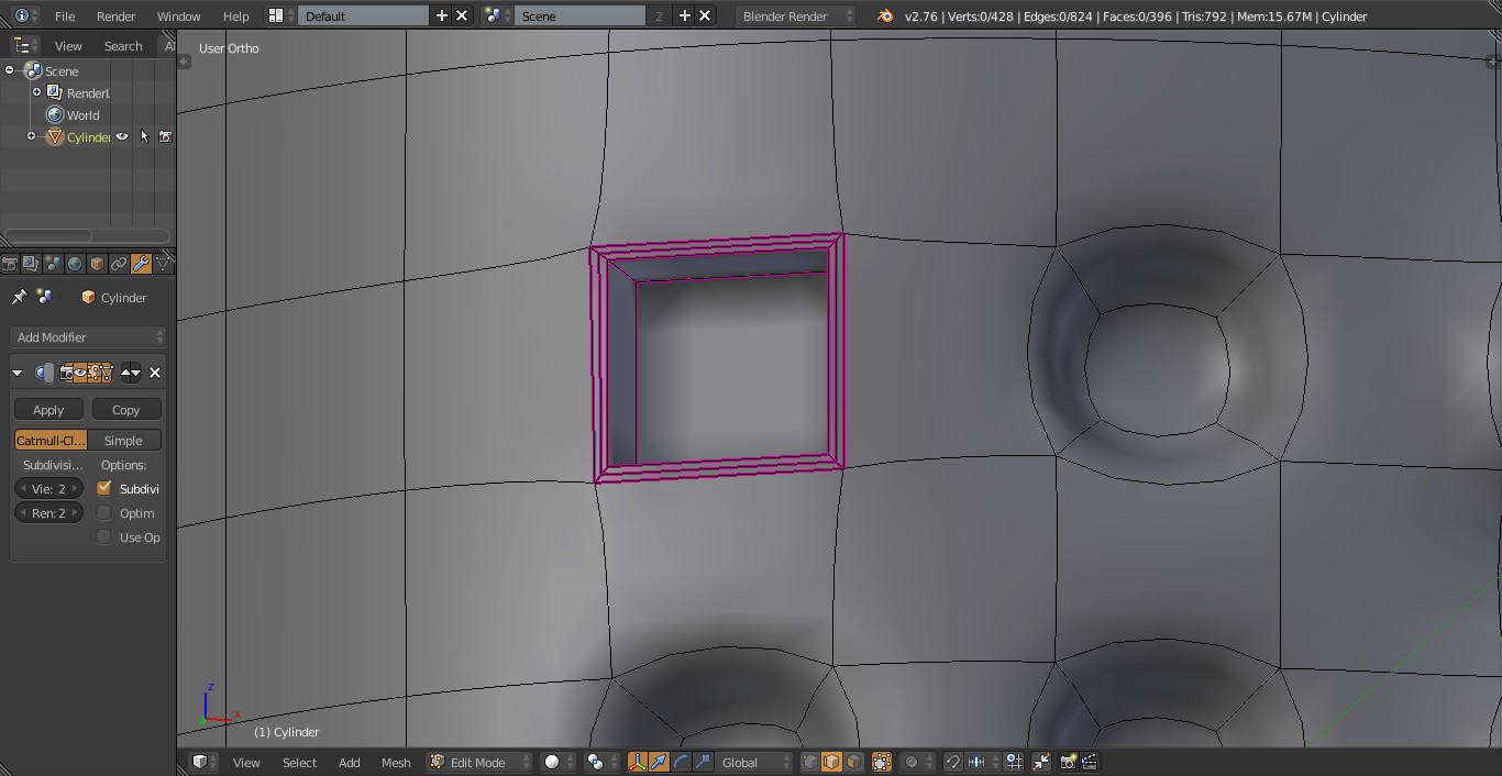 Hola, el problema es que no sé cómo hacer para extruir cuadrados (formas rectangulares en general) en un objeto cilíndrico sin deformar la malla. Al tener el Subsurface me salen formas esféricas, y como el objeto no es plano no puedo añadir loops en los bordes (es lo que suelo hacer en estos casos) para darle forma rectangular. Bueno, poder puedo, pero entonces me cargo la malla entera.