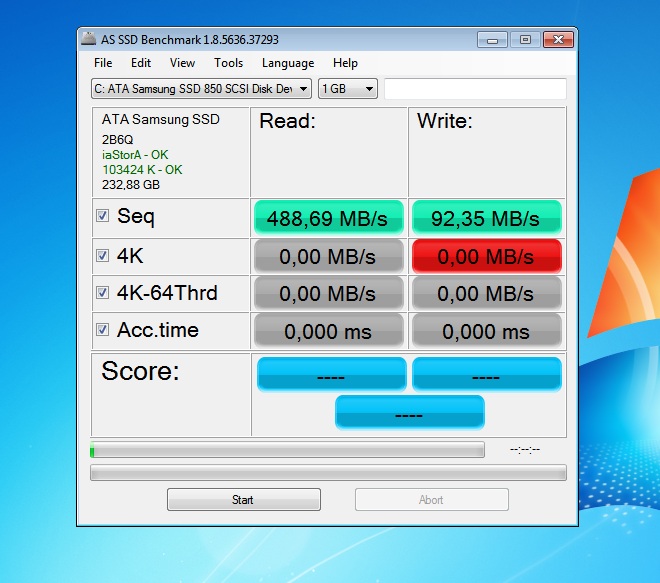 Hola buenas escribo con la esperanza de que alguien pueda ayudarme, el tema es el siguiente, he instalado todo el equipo, en concreto es una Asus z10pe-d8 WS con dos Xeon 2699v3; 32 Ram ddr4 y este disco duro, el Samsung SSD 850 evo. La primera instalación la hice con un Windows 10 y tenía algún problema con algún driver de la placa, no obstante, hice una prueba para comprobar el SD y me dió los valores esperado 520/500. He formateado e instalado Windows 7, instalar últimos drivers, en la Bios SATA está en modo ahci, los valores son de unos 488/92, no entiendo nada. Espero subir bien la imagen y que sea visible. Muchas gracias de ante mano. (me mosquea en la imagen donde en el nombramiento del disco pone SCSI). Edito: mi otro disco duro SD no aparece como SCSI y este juraría que en Windows 10 aparecía como SATA.