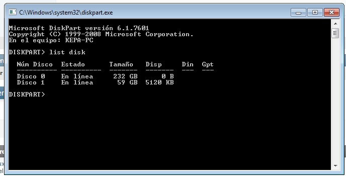 Una vez que lo hayas hecho te aparecerá un intérprete de comandos (ventana en negro con letras blancas al más puro estilo MS-DOS).