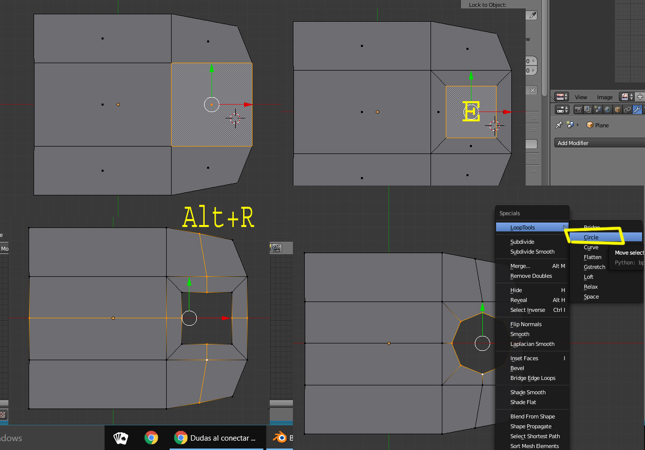 Con una cara seleccionada, al pulsar la letra (i) creas una cara dentro de la seleccionada, eso te puede ser útil para las ventanas etc.