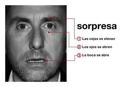 04.-SORPRESA: Es la emoción más breve y puede fundirse con otras. Los párpados superiores suben, pero los inferiores no están tensos. La mandíbula suele caer.