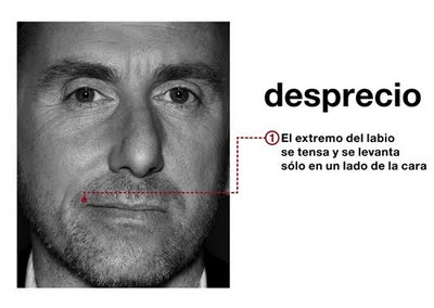 07.-DESPRECIO: Es una expresión parecida al asco, porque la acción sólo se produce a un lado de la cara. La comisura del labio está más tensa y algo elevada.