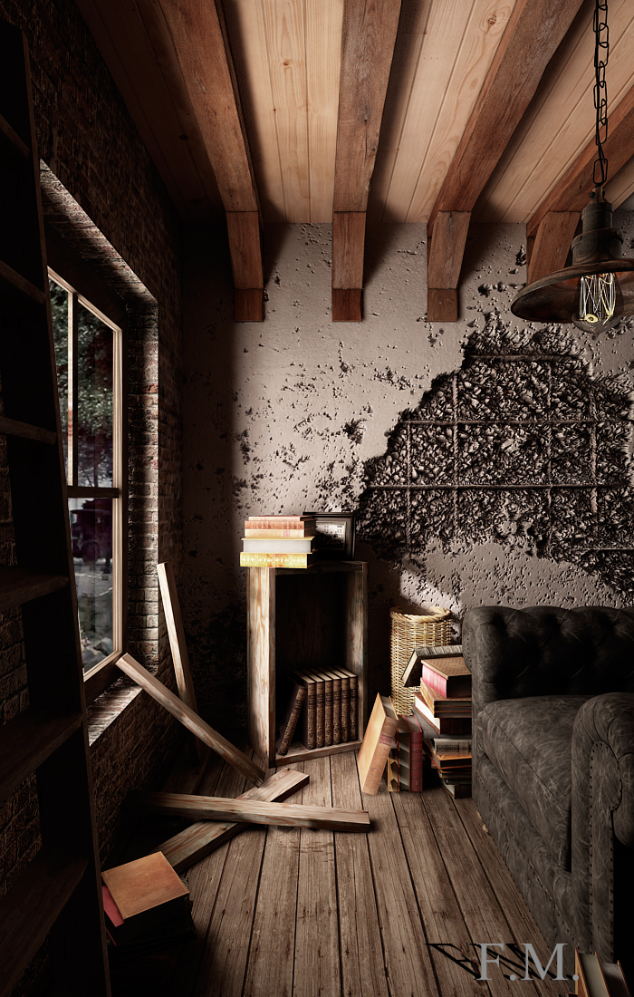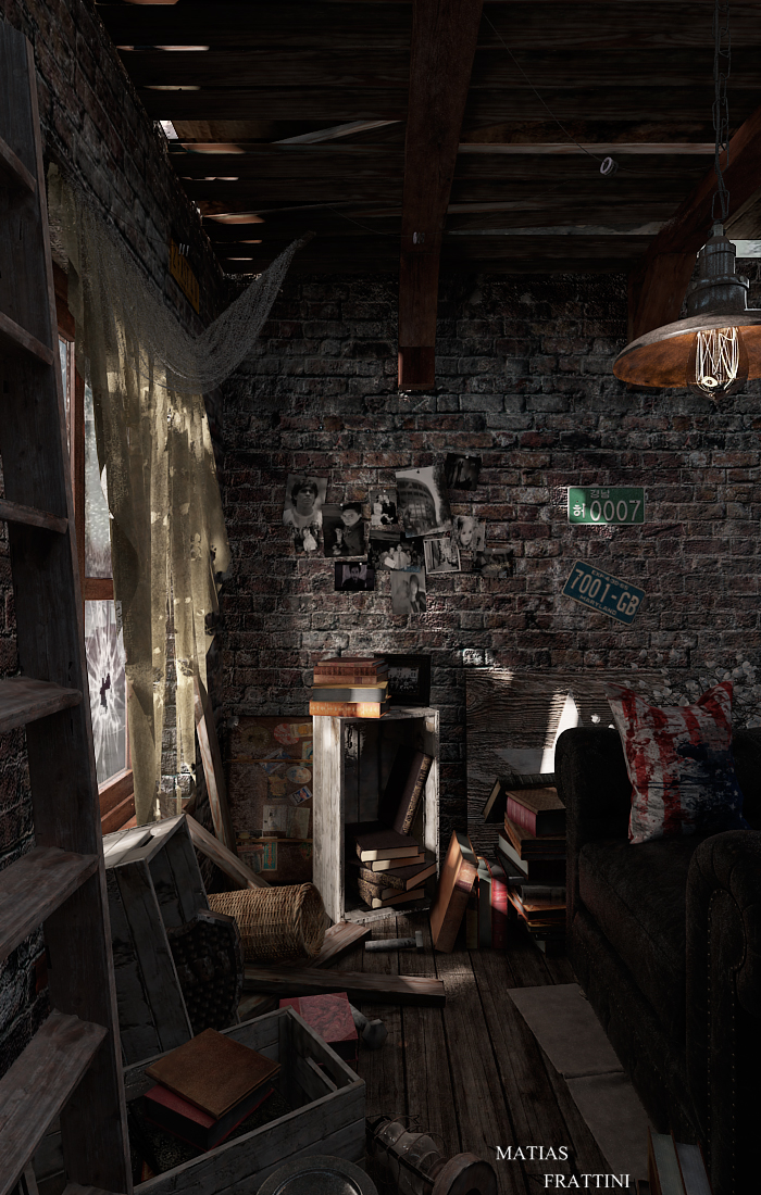 Veo un trabajo muy bueno, felicidades, si me lo permites hay dos cosas que no acaban de encajar con la escena, o no del todo, una es la ventana, esa textura de madera no pega mucho con el resto del trabajo o con la antigüedad que se pretende en la imagen, y la otra también en la ventana es ese dintel de tocho tiene algo raro en las texturas, pero vamos, por comentar algo a mejorar bajo mi vista, repito que el trabajo es muy bueno, un saludo amigo.