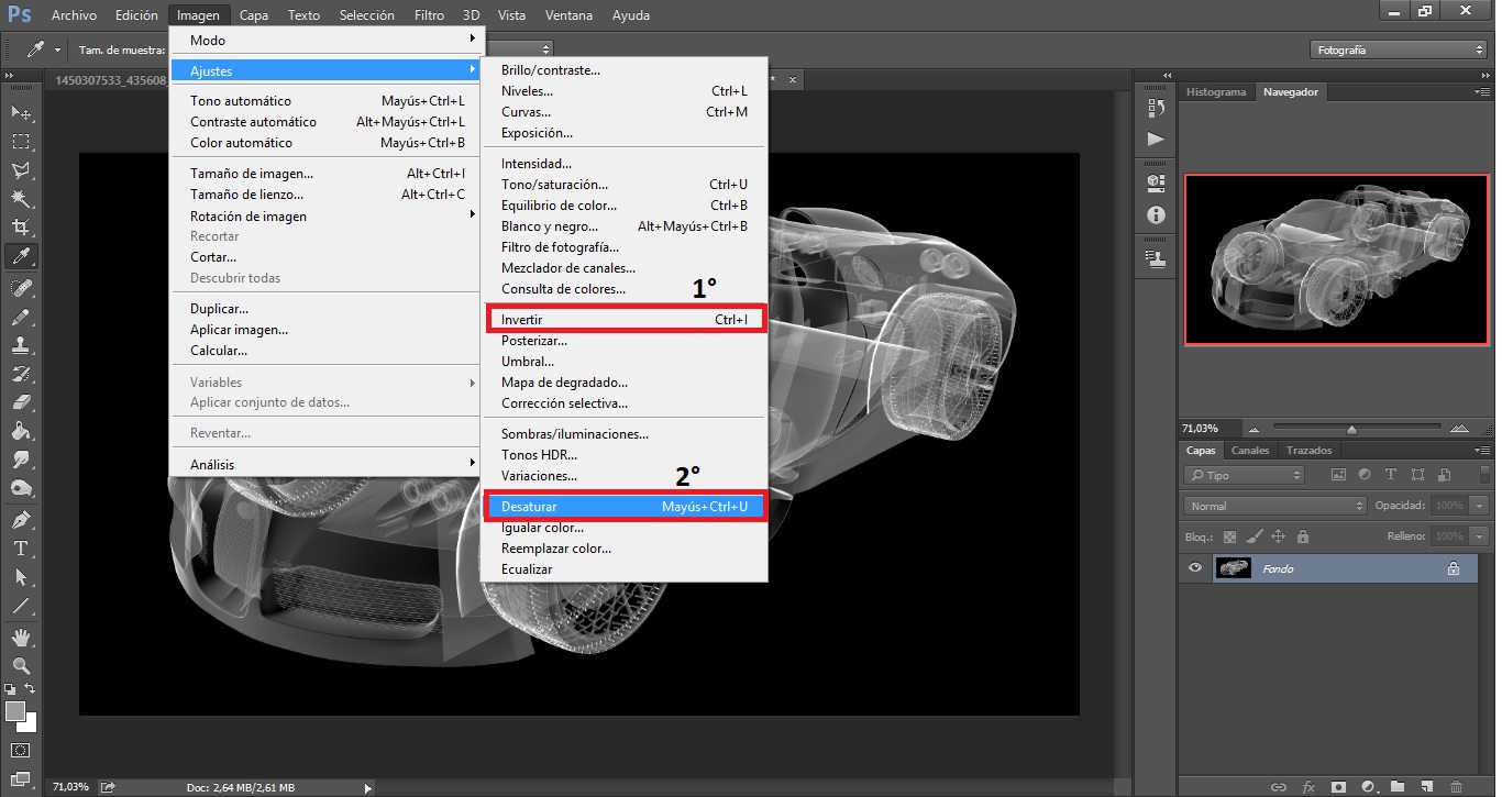 Luego desature e invertí: (no consideres la imagen de mi auto en este ejemplo).
