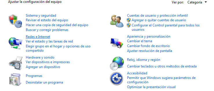 Panel de control/Redes e Internet/.