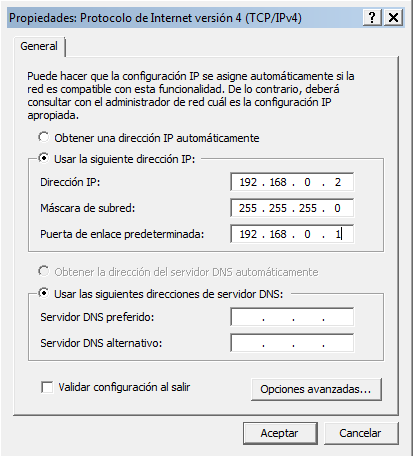 Protocolo de Internet V4 (TCP/IPv4) / Propiedades/.