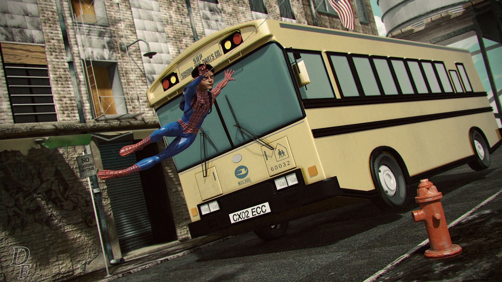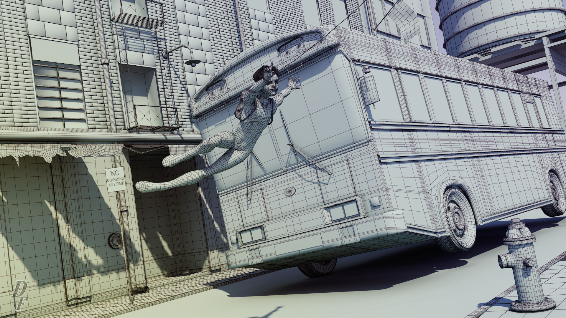 Lindo trabajo. Podrías aumentar un poco la AO? (especialmente para qué se asiente el bus) y de paso para darle un aspecto más de cómic (más duro).