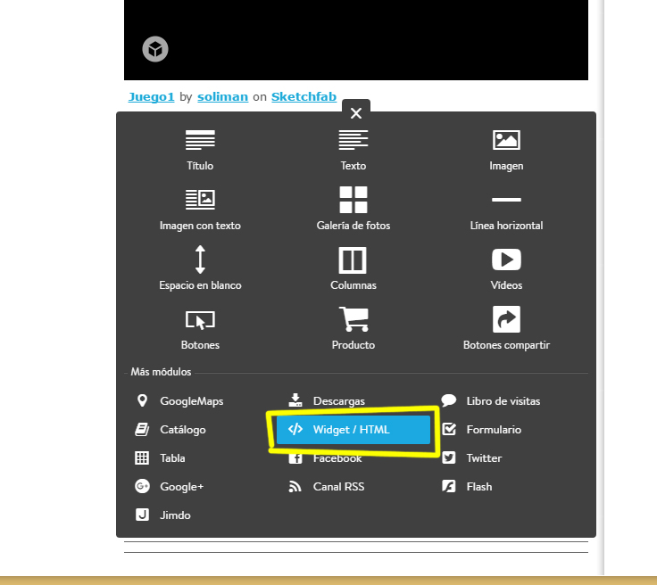 Y luego en una página como JIMDO, que es gratuita, se pega en un WIDGET.